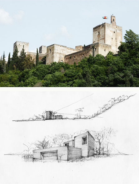 Dos torres, que así como en la alhambra se alzan para contemplar el paisaje lejano, se van mezclando entre jardines.